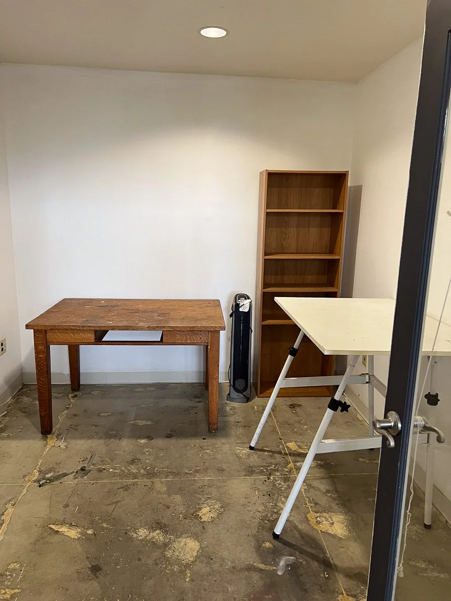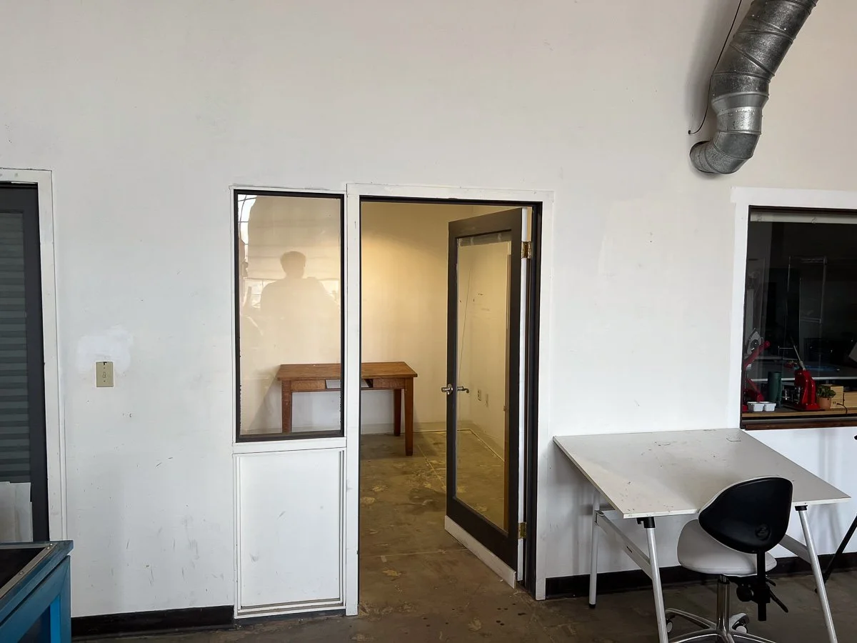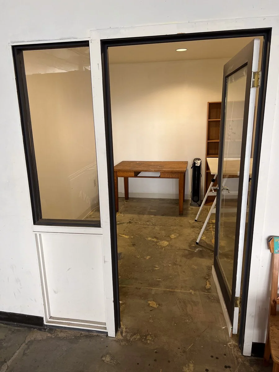 Studio 15 is a small - 8×11 ft , private, and cozy space . It’w one o f our smaller studios, it has a locking door, window to the common area, recessed lighting and sprinklers. Common tables are just a few feet away and is close to a bathroom. Washout sinks are around few more feet away in our other common areas. WiFi and utilities included!